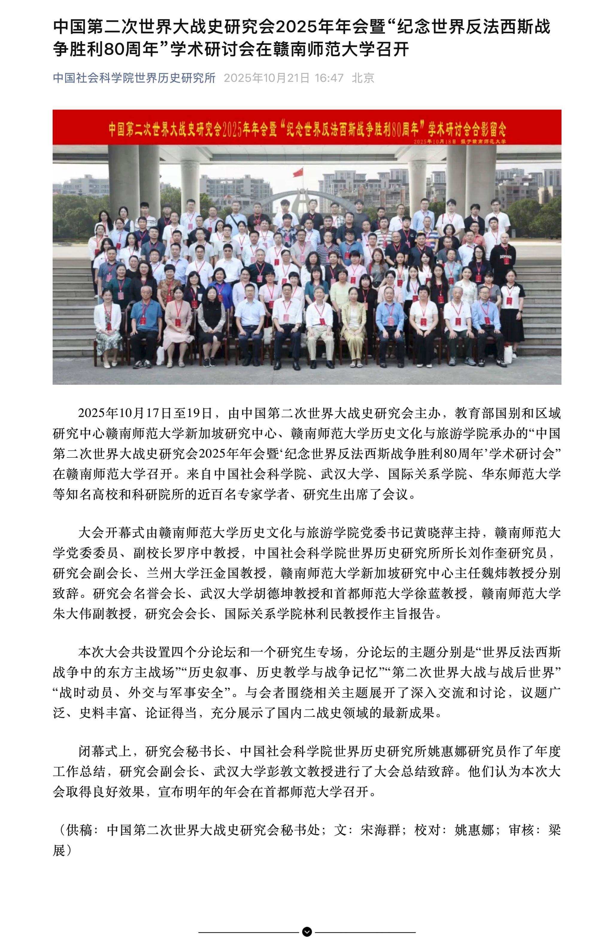 上一条:魏炜教授获江西省第二十一次社会科学优秀成果二等奖 下一条:军事科学院刘庭华研究员应邀来赣南师范大学新加坡研究中心讲学